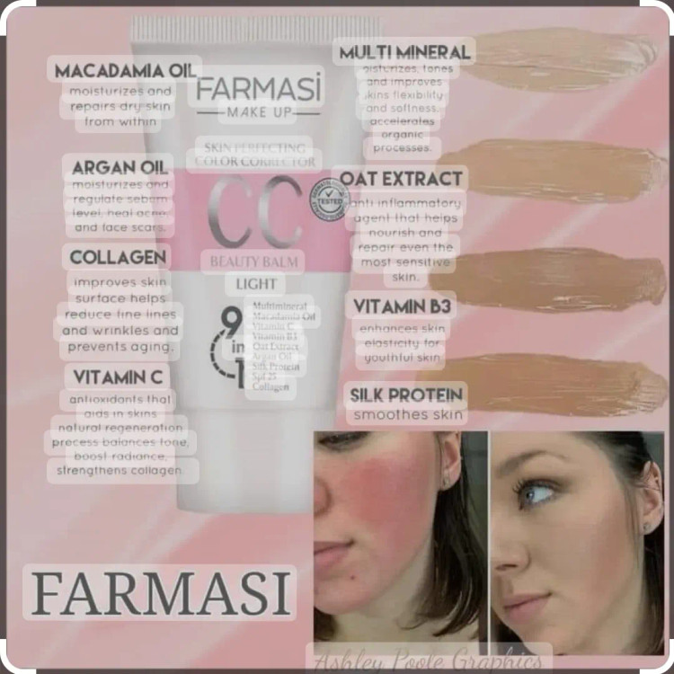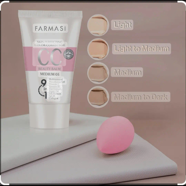 سی سی مخفف color corrective (اصلاح کننده رنگ) است، و حاوی یک پرایمر روشن کننده پوست، فونداسیون سبک، مرطوب کننده، ضد آفتاب، ترکیبات ضد پیری و گاهی اوقات تقویت کنندههای کلاژن است