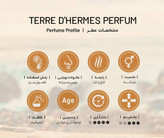 هنگامی که تق هرمس را روی محل نبض یا لباس خود اسپری کنید به سرعت بوی پرتقال و گریپ فروت را احساس خواهید کرد. شیرینی همراه با خنکی ناشی از این مرکبات احساس آرامش ویژه ای را به شما و اطرافیانتان القا میکند با گذشت زمان این نتها جای خود را به بوی فلفل سیاه و گل شمعدانی میدهند این ترکیب دوگانه با تضاد جالبی که به همراه دارد باعث تغییر روحیه ی کسانی میشود که بوی آن را احساس میکنند در انتها و پس از گذشت مدت قابل توجهی رایحه ی گیاه پاتچولی، سدر و علف وتیور جدیت خاصی را به بوی Terre De Hermes اضافه میکنند.