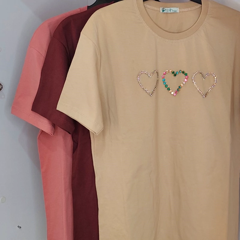 تیشرت نخی زنانه طرح قلب