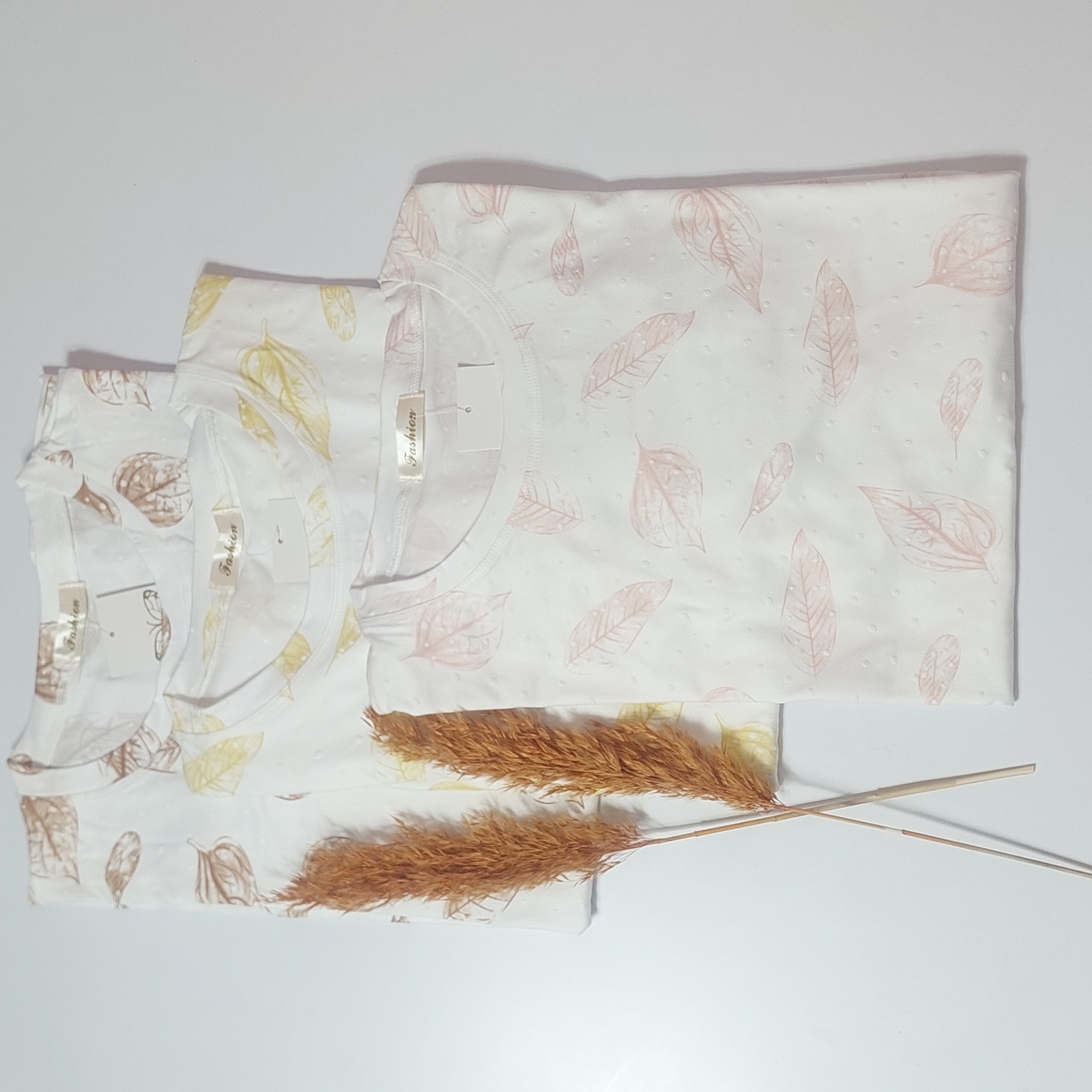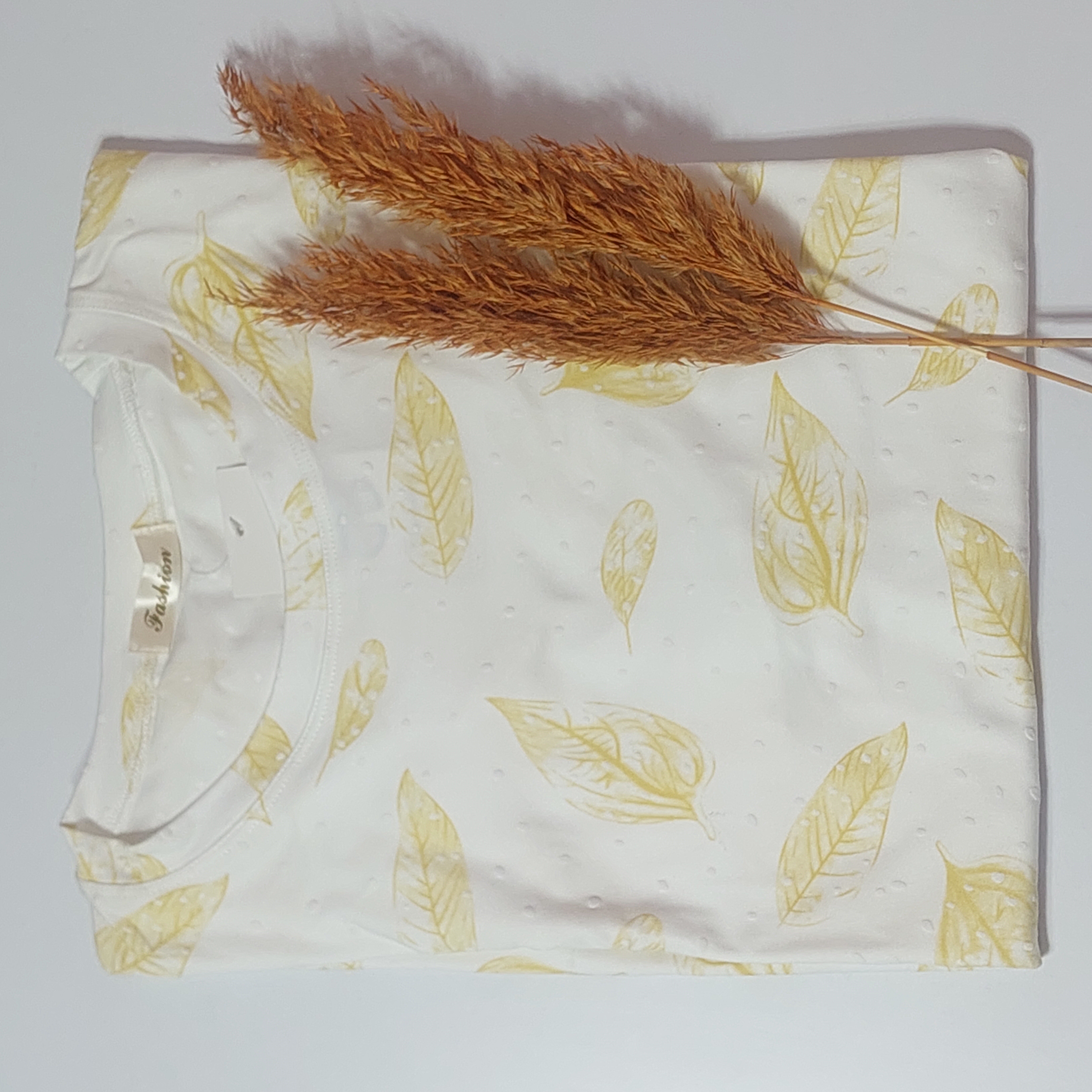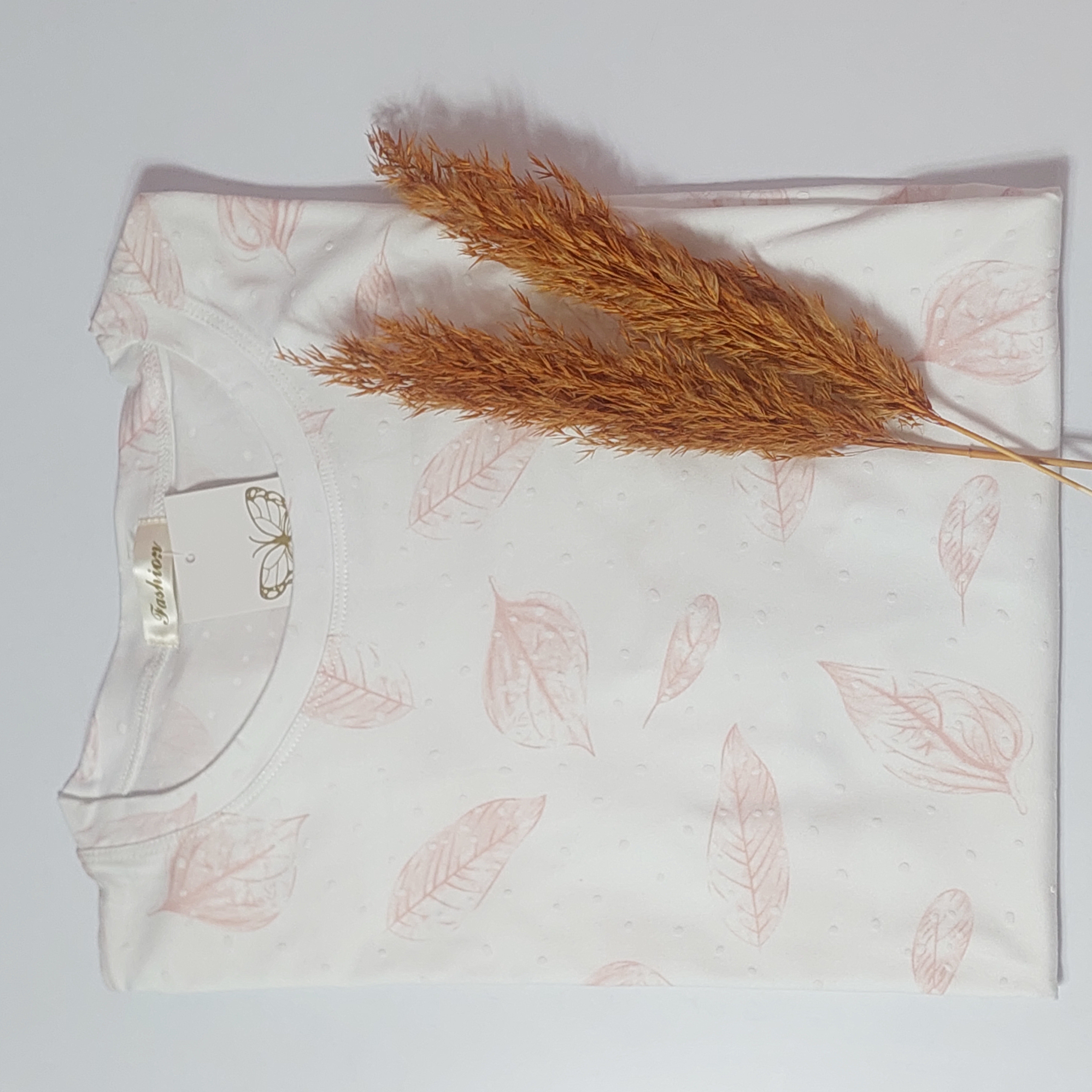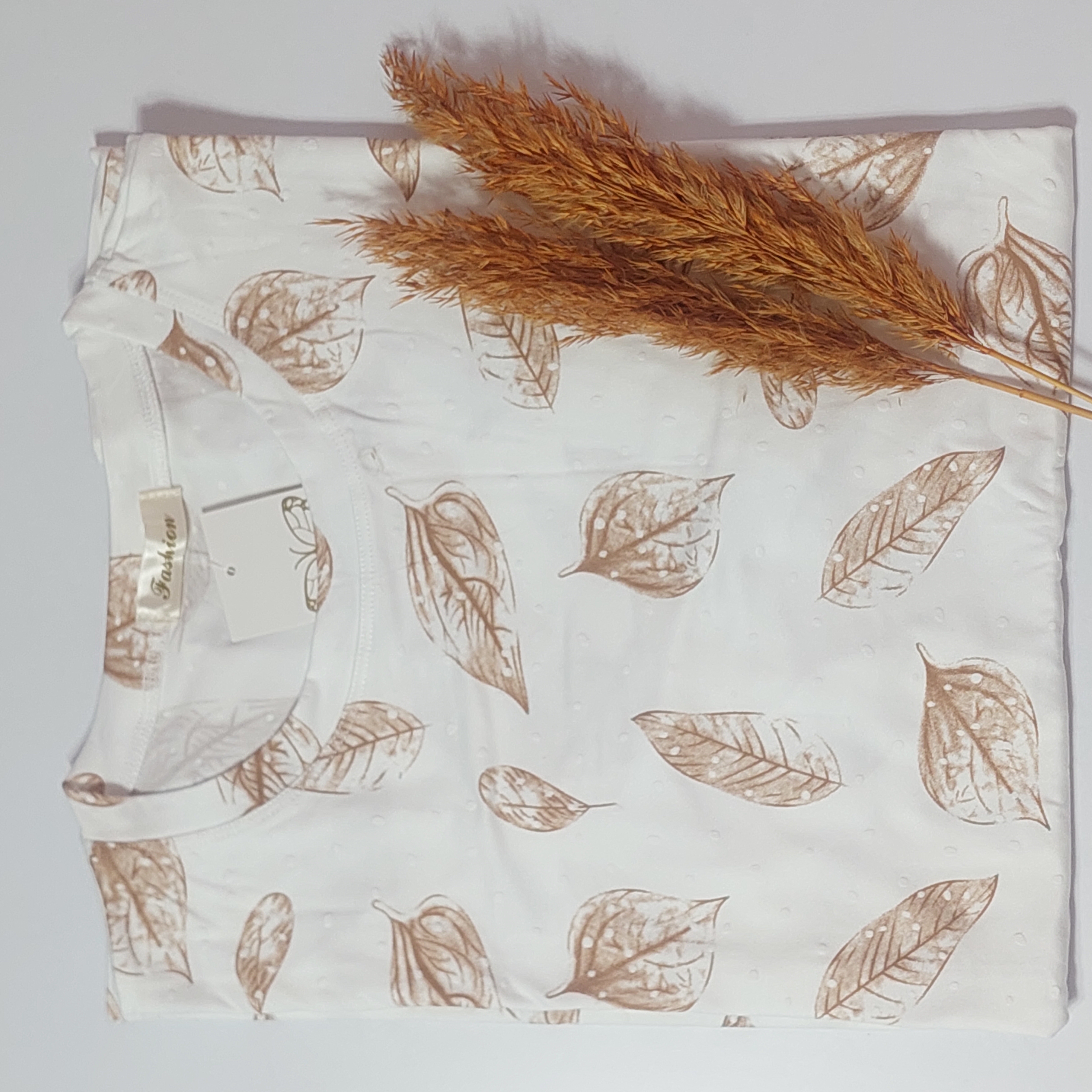 تیشرت نخی وارداتی زنانه طرح برجسته برگ